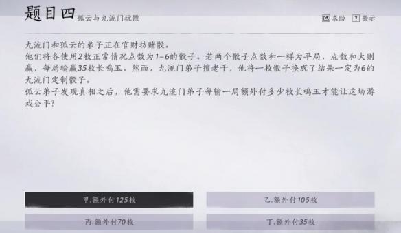 孤云弟子发现真相之后,他需要求九流门弟子每输一局额外付多少枚长鸣玉才能让这场游戏公平?