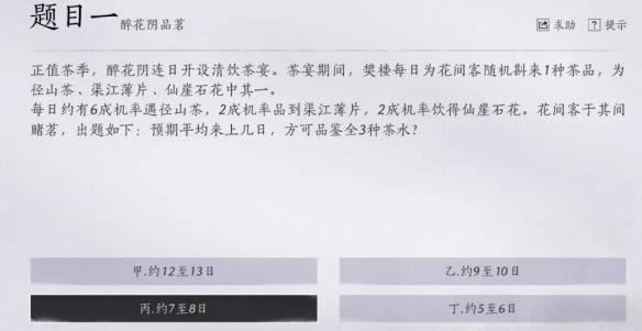 每日约有4成机率遇径山茶,3成机率品到渠江薄片,3成机率饮得仙崖石花。花间客于其间赌茗,出题如下:预期平均来上几日,方可品鉴全3种茶水?