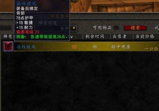 魔兽怀旧服固定增加急速等级的装备在P3才开始普及,现阶段只有少数饰品可以触发急速特效。不过刀锋山还有这么一件115等级的蓝披风,自带26常驻急速等级,它就是晶纹披风,虽然是蓝色品质却比P2所有紫披风都强。猎人如果想在单体DPS上赢过火毁术士,务必入手一件,拍卖行最便宜只要100金。