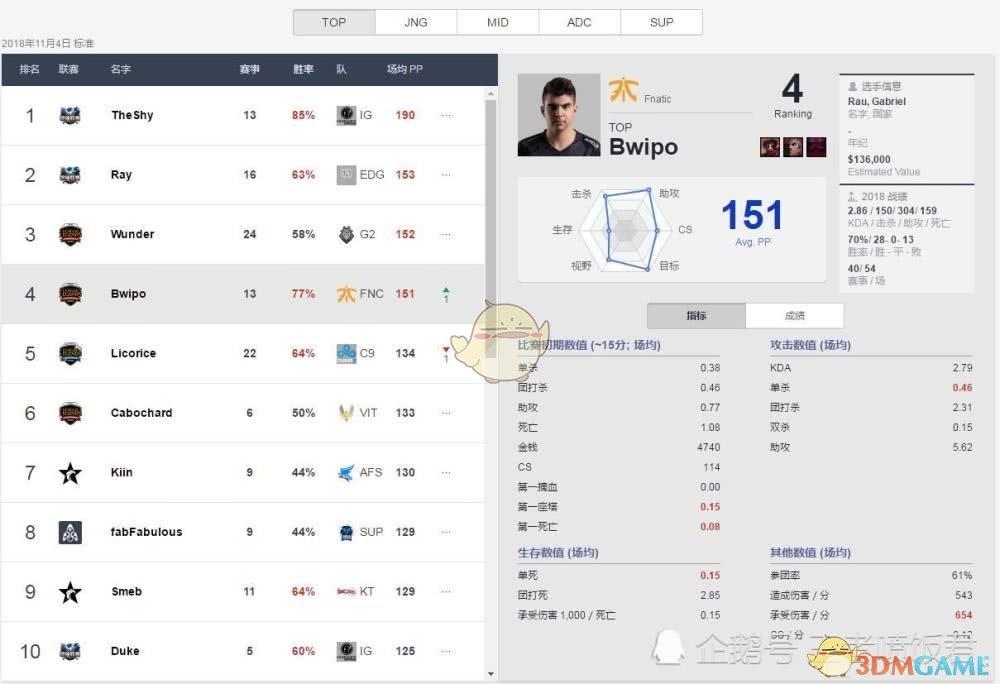 作为FNC的替补上单选手,Bwipo在LCS的表现毋庸置疑,但在FNC中,最重要的Carry点无疑是欧洲法王Caps!FNC的战术很简单,前期打中上(核心是中路),后期靠欧成!所以,上路的Bwipo表现就非常关键,在遇到the shy前,他曾直言the shy和Letme不一样,the shy比Letme更强,他的细节非常足,结果最后确实是被the shy打爆了,甚至落下了头铁厄加特的美名,但如果仔细看他的数据,单杀数据超过了the shy,可见,他确实实力不俗!