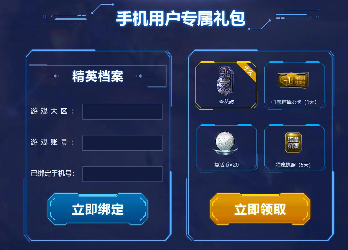活动期间,绑定手机号的玩家可在本页面领取礼包和特权,之前已绑定过手机号的玩家同样也可以在本页面领取奖励;