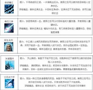 冰凝霜华:冷冻目标数秒,被冷冻之后无法任何操作。