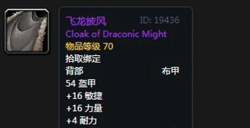 4、飞龙披风:披风,出自黑翼之巢副本小怪掉落,推荐附魔次级敏捷;