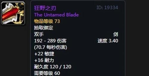 基础属性:192-289伤害,攻速3.40,+22敏捷,+16耐力,装备效果力量提高300点,持续8秒。