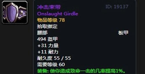 装备属性:488护甲,+13耐力,装备效果使你造成爆击的几率提高1%,+54 攻击强度。