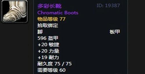 11、多彩长靴:脚部,出自黑翼之巢副本克洛玛古斯掉落,推荐附魔初级速度。