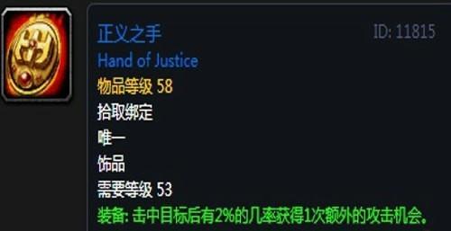 15、正义之手:饰品2,出自黑石深渊副本安格弗将军掉落,无法附魔。