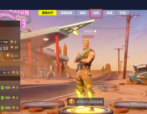 1.首先我们进入游戏,然后选择上方的仓库界面,点击进入。
