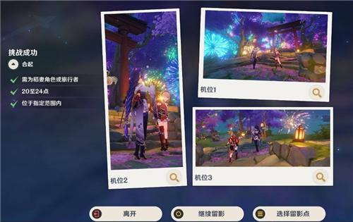 将游戏内时间调整至20至24点,切换到一名稻妻角色或旅行者,与宵宫对话开始留影。选择任意姿势,可以在界面左侧查看是否符合留影要求。