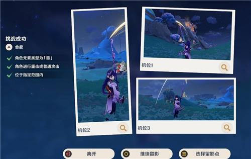 切换出一名雷元素角色,与留影点互动,根据喜好进行调整,然后可以在界面左侧查看是否符合留影要求。