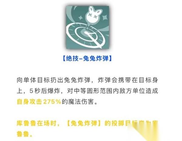 4级:施放奥义后,立刻重置【兔兔炸弹】CD,库鲁鲁获得攻速+100%、移速+40%。