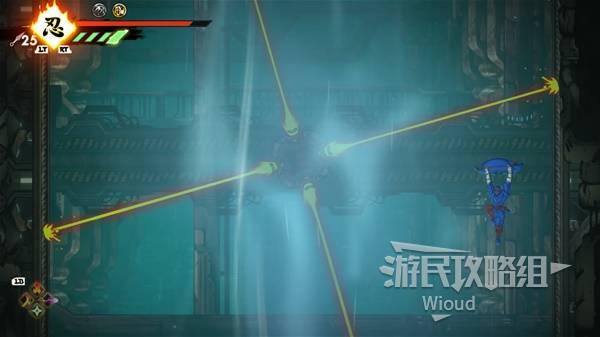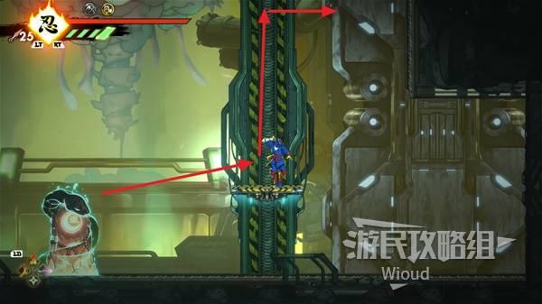 尽头乘风道往上走,我们需要卡在激光机关的中间移动,需要熟练控制滑翔伞。