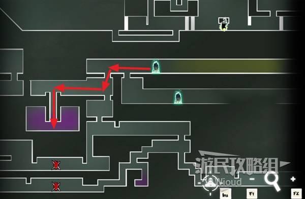 传送到石碑【西实验室】,沿着红色箭头走到紫色房间。