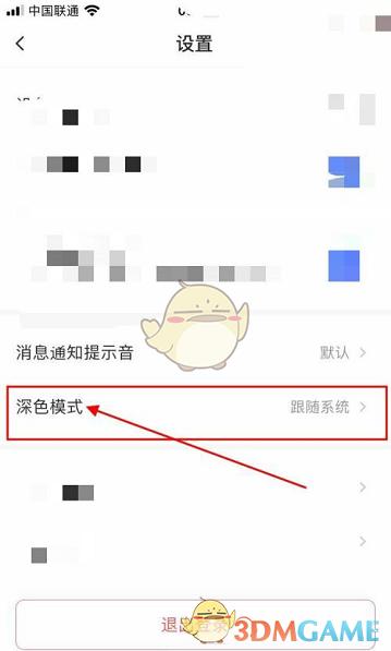 3、进入设置页面,再点击【深色模式】。