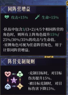所以在配队时一定要考虑到阵营问题(星卡可以成为任意阵营的一员),推荐每个队伍搭配保底3+2花色,同时针对敌方阵容针对性搭配和站位,可大幅提升通关效率,不推荐每个队伍都追求5花色,同花色完全搭配不一定有混搭花色带来的机制加成提升大。