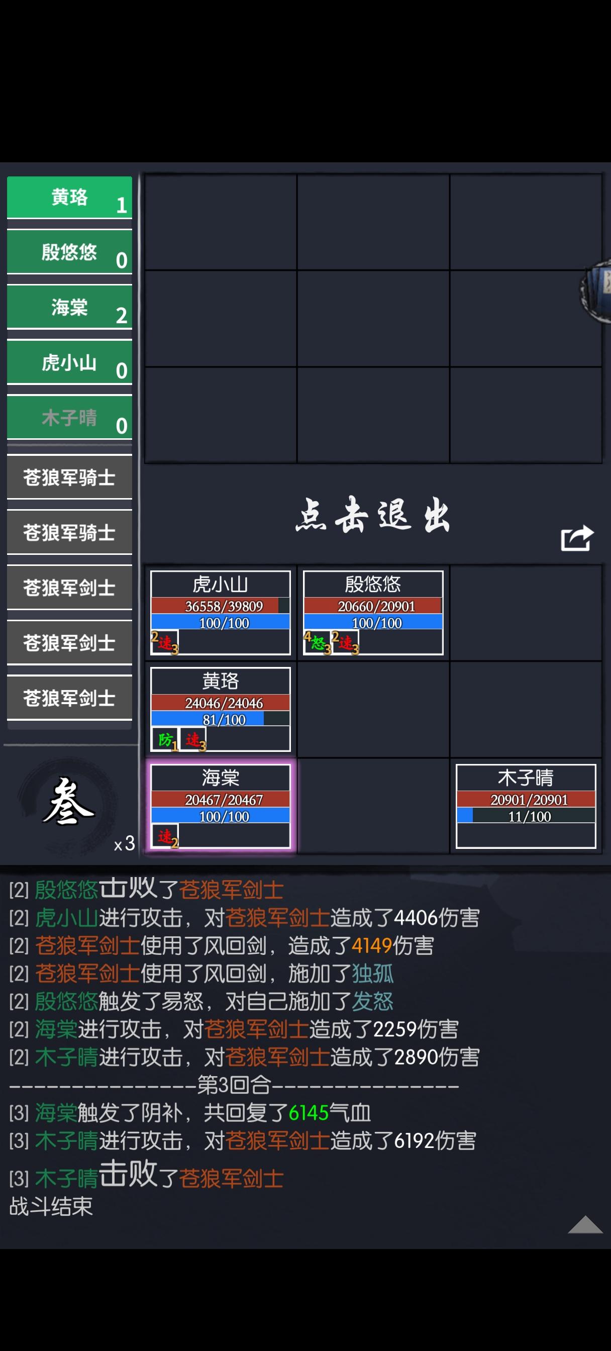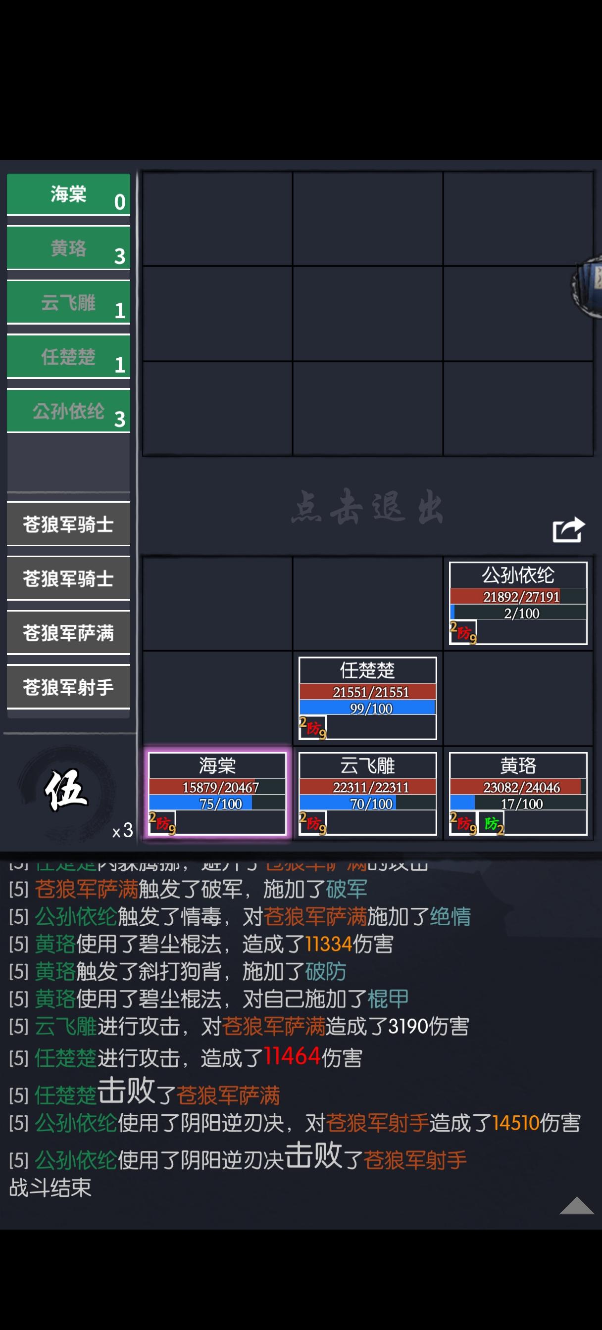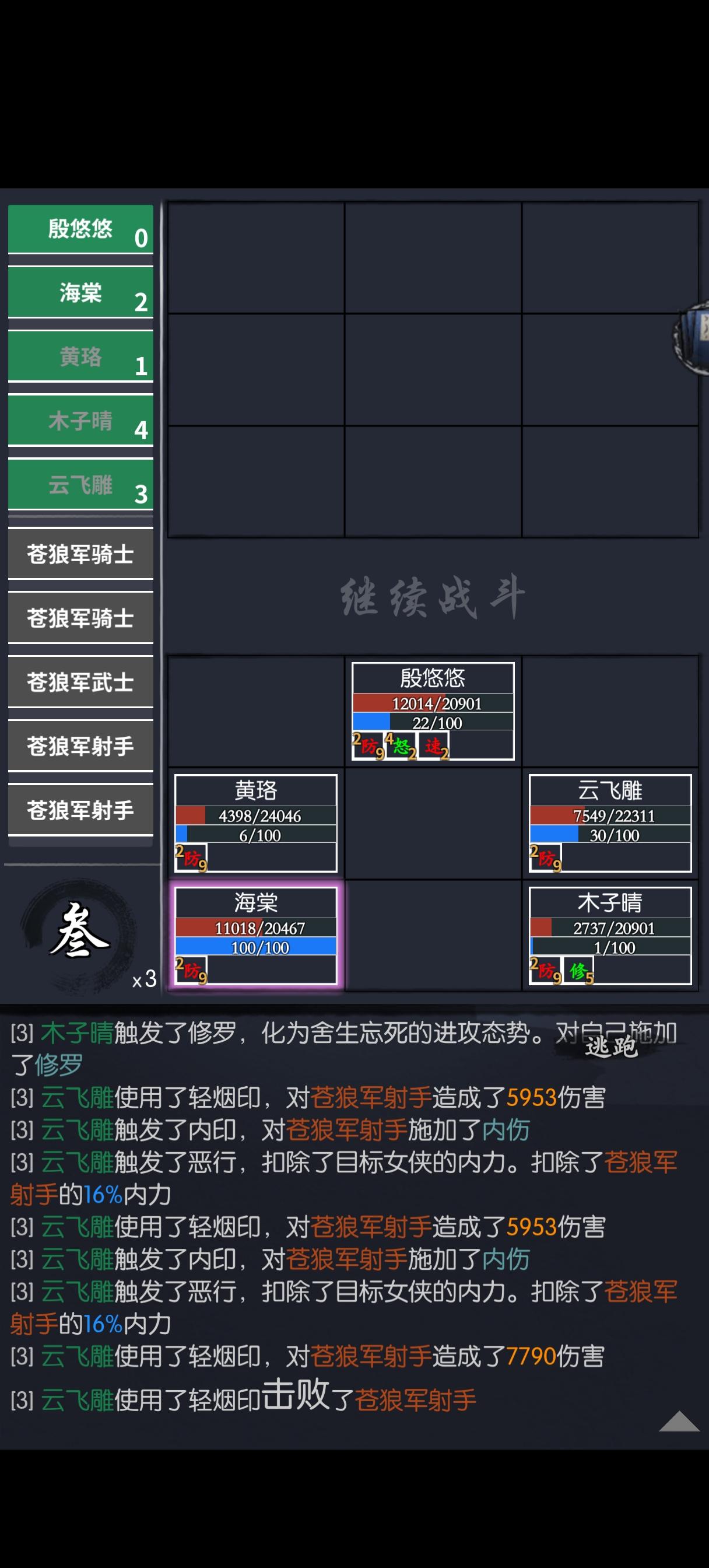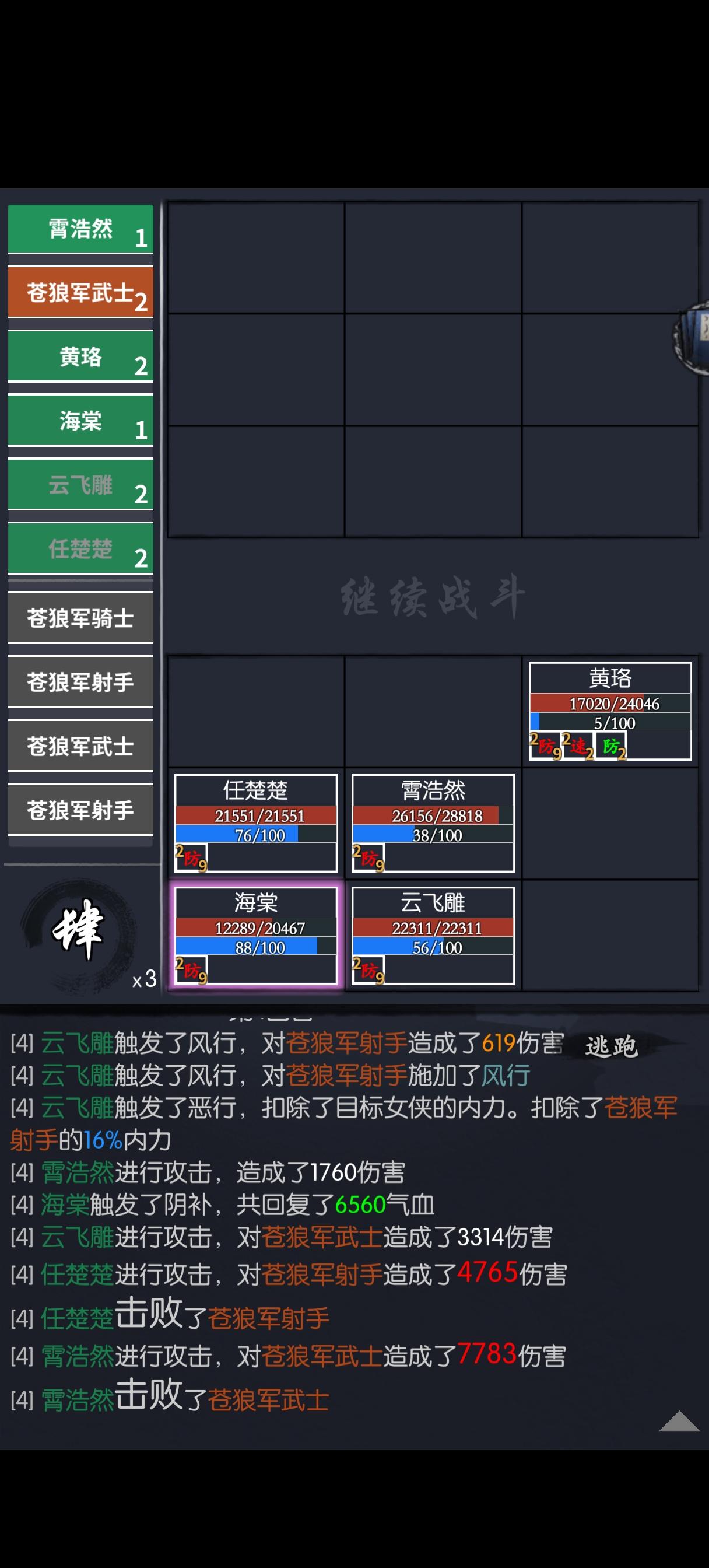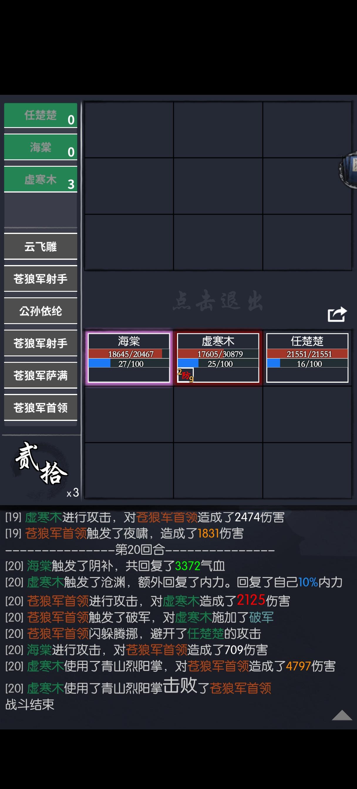 划重点:海棠的几个武学回血的关卡不要错过!14,17,20,23,30关(截图里都有提示,可以稍微观察一下结束截图的回合数)