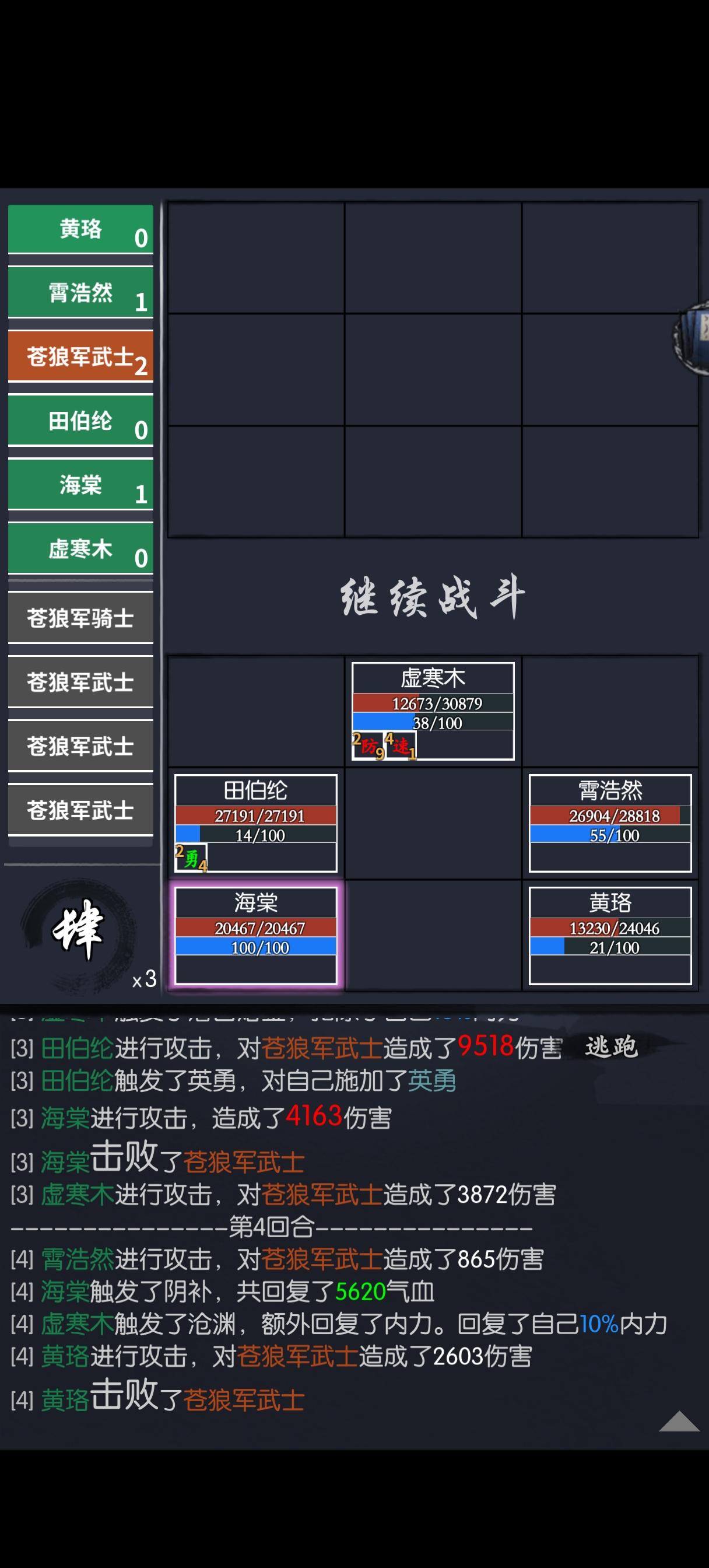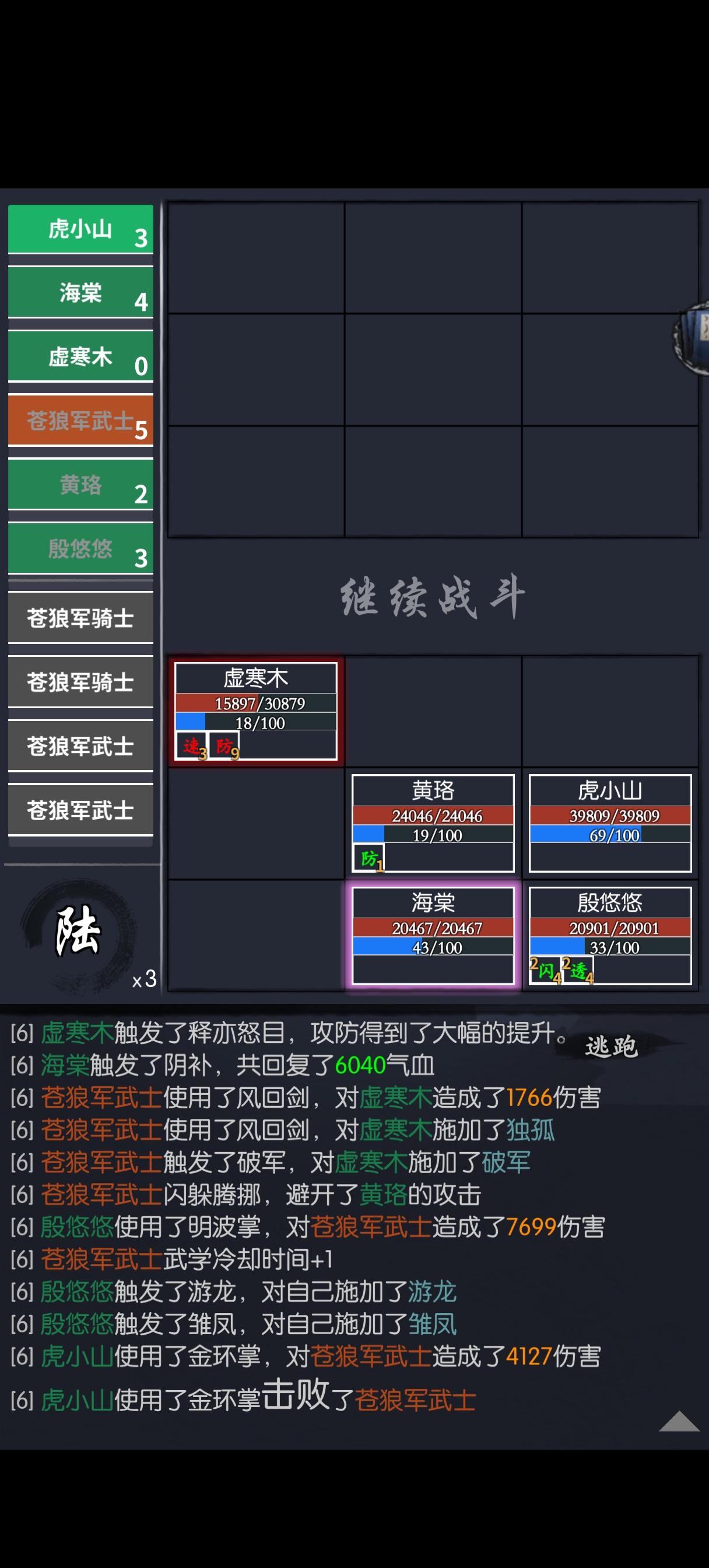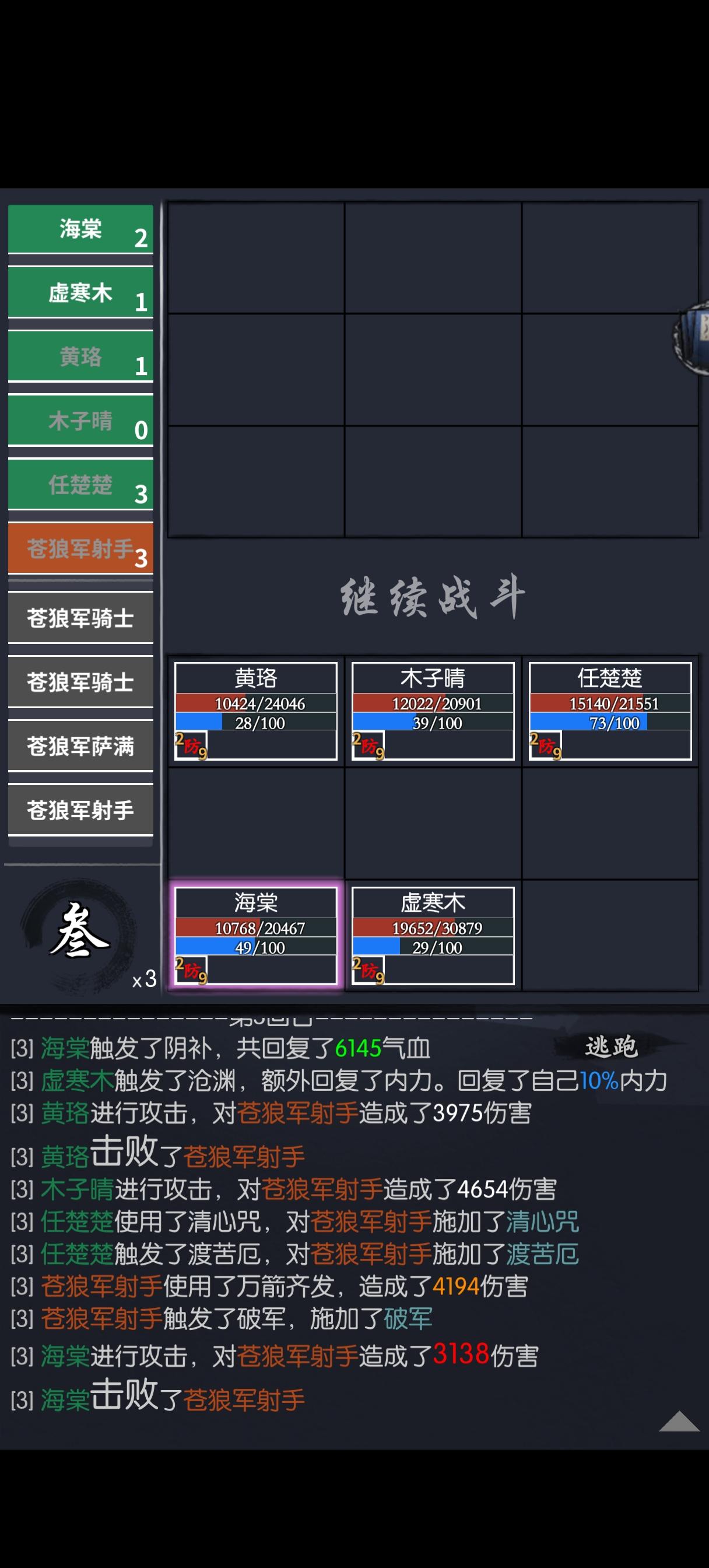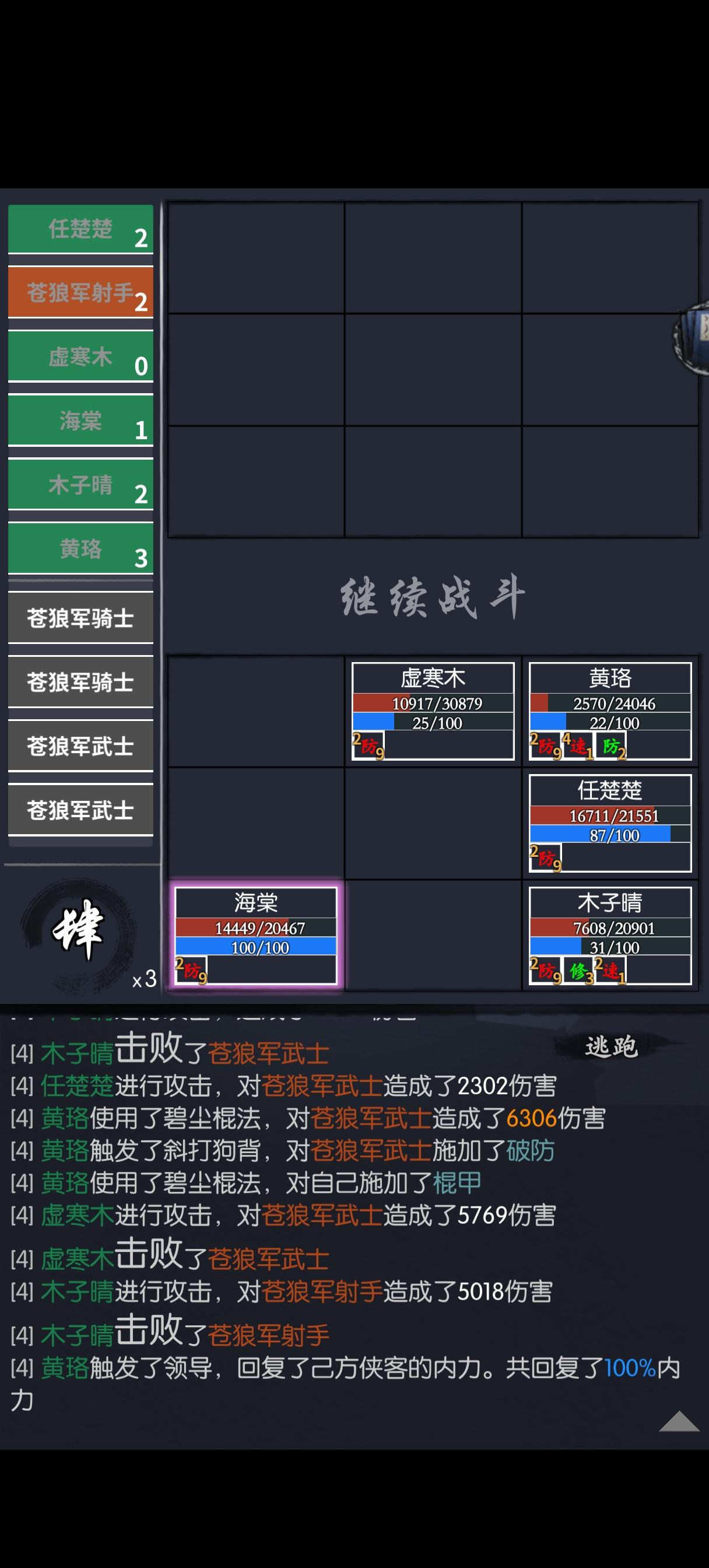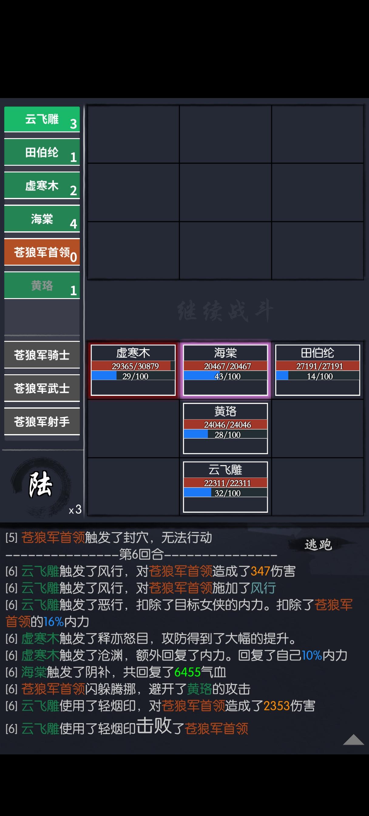 划重点:海棠的几个武学回血的关卡不要错过!14,17,20,23,30关(截图里都有提示,可以稍微观察一下结束截图的回合数)
