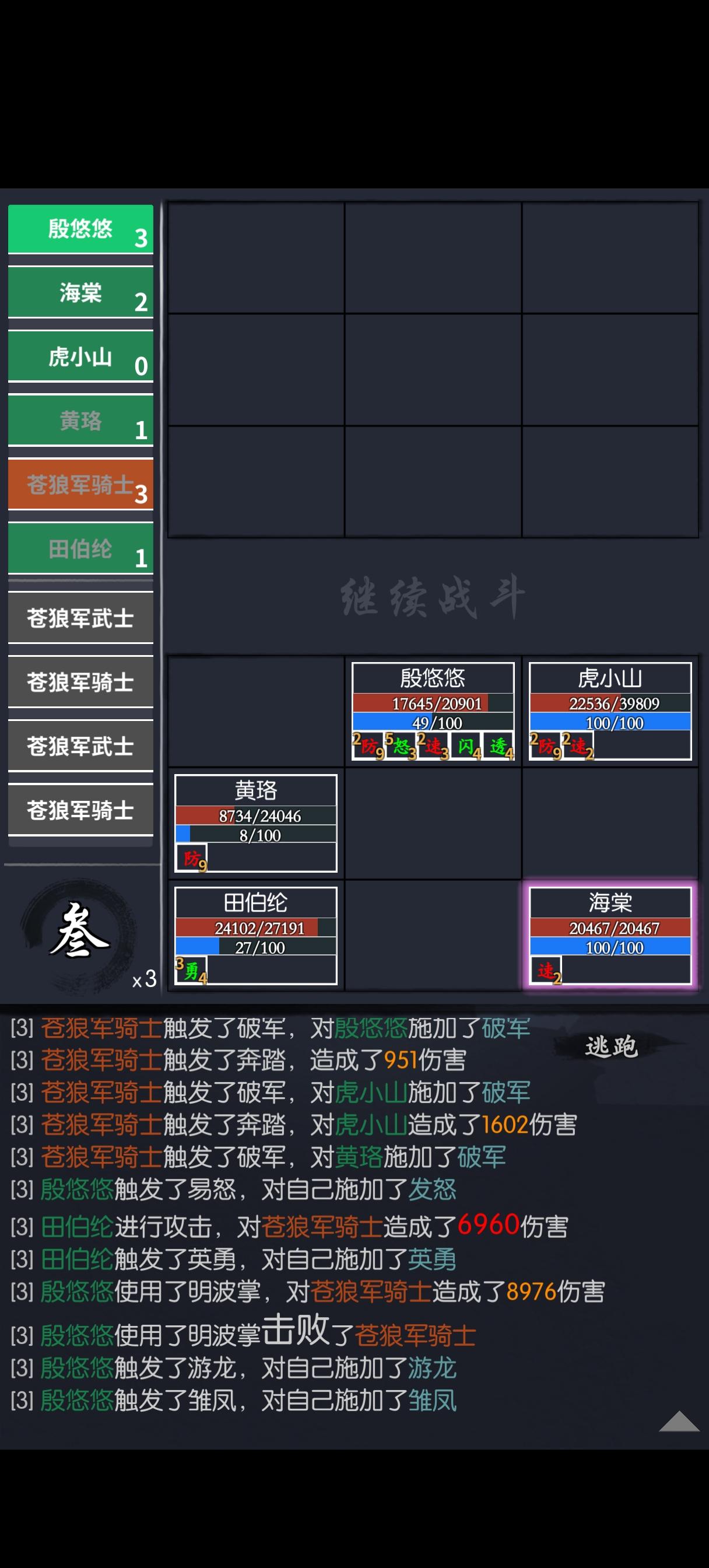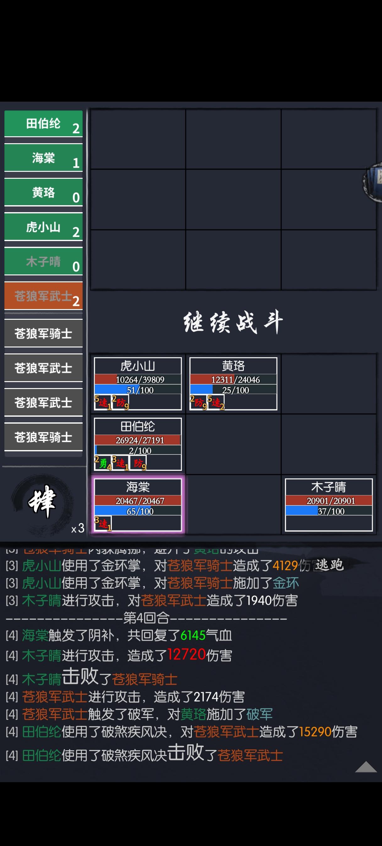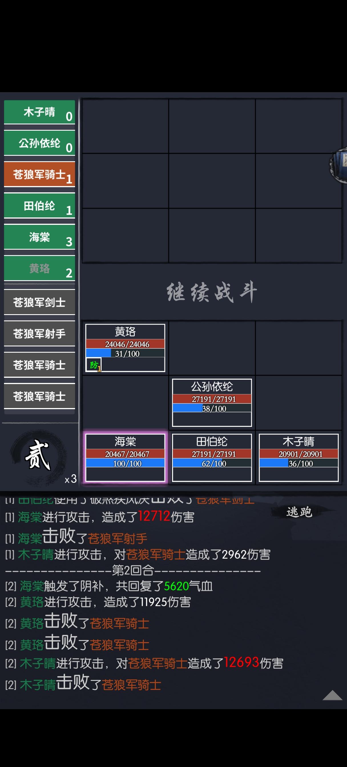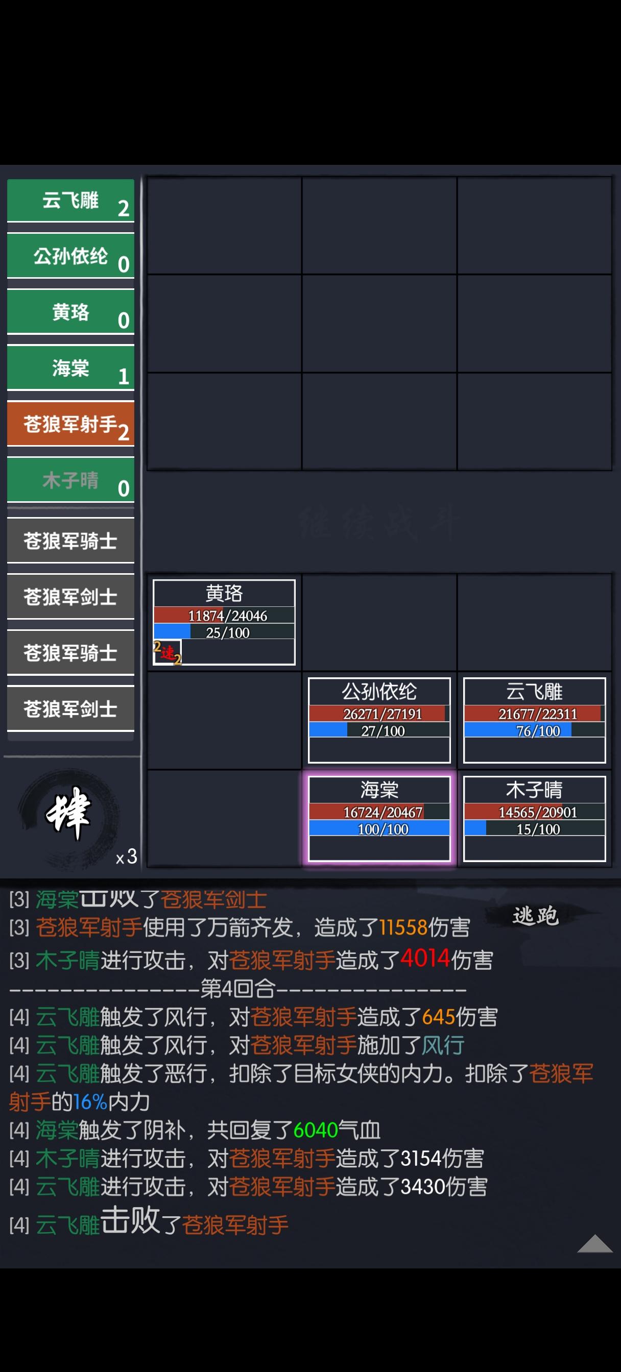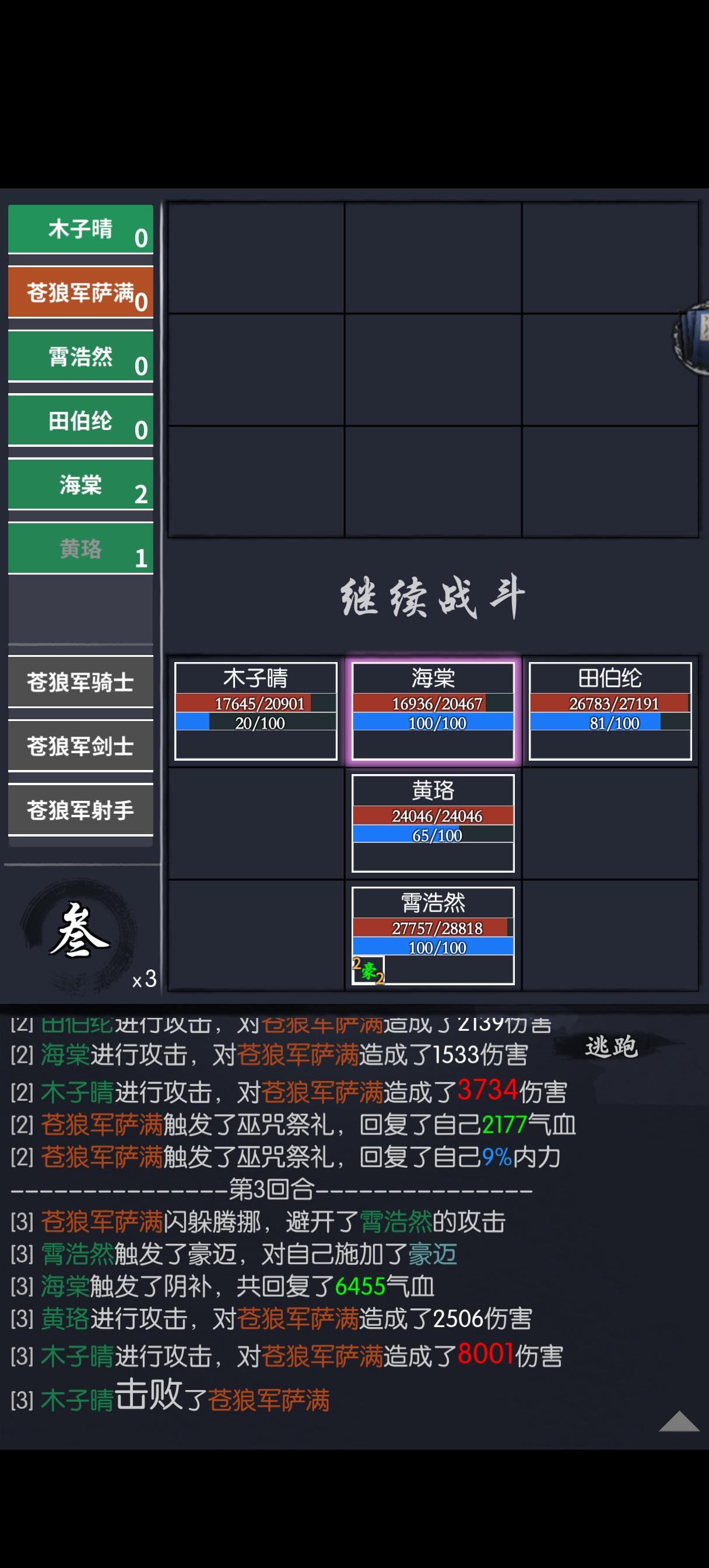 划重点:海棠的几个武学回血的关卡不要错过!14,17,20,23,30关(截图里都有提示,可以稍微观察一下结束截图的回合数)