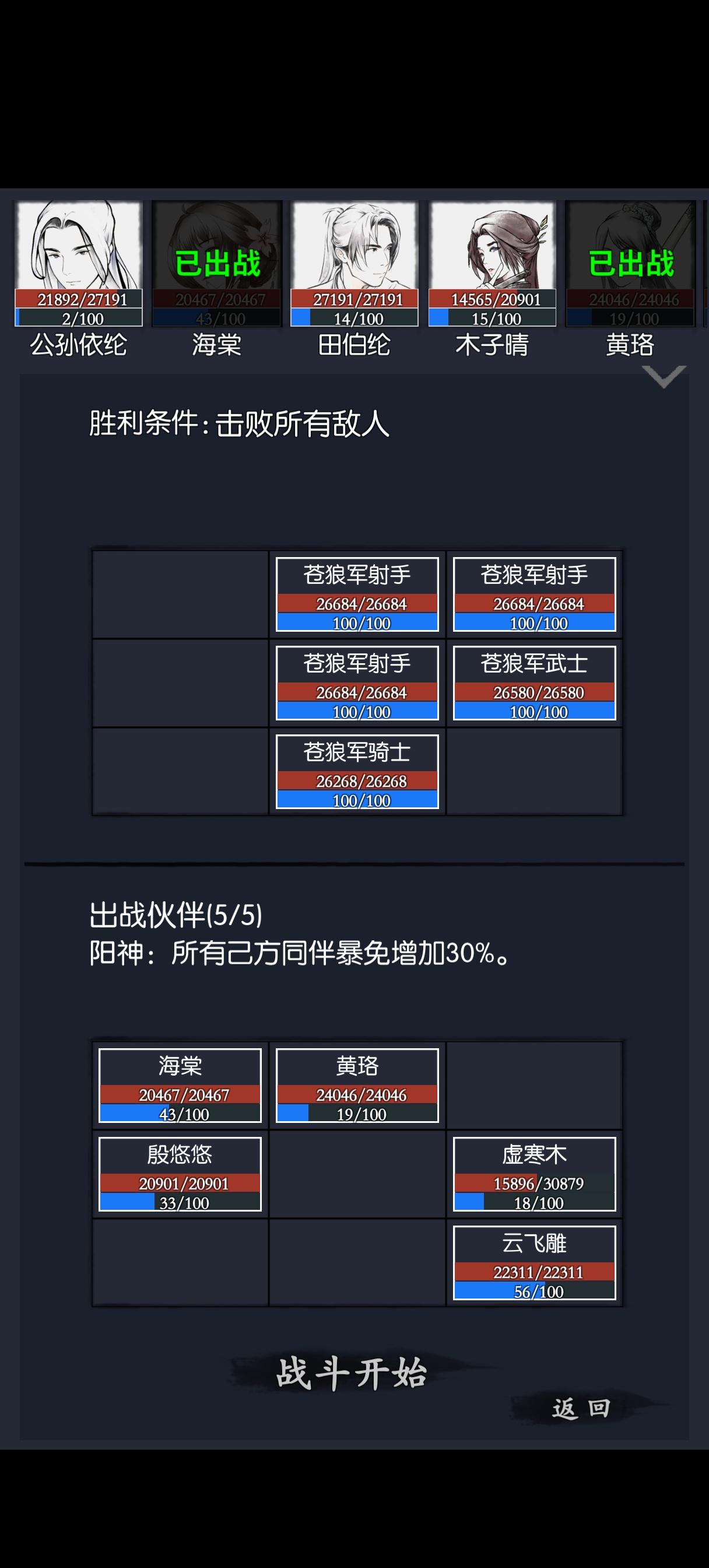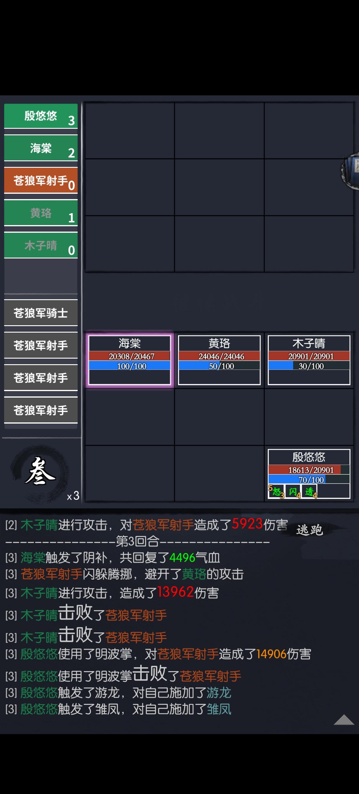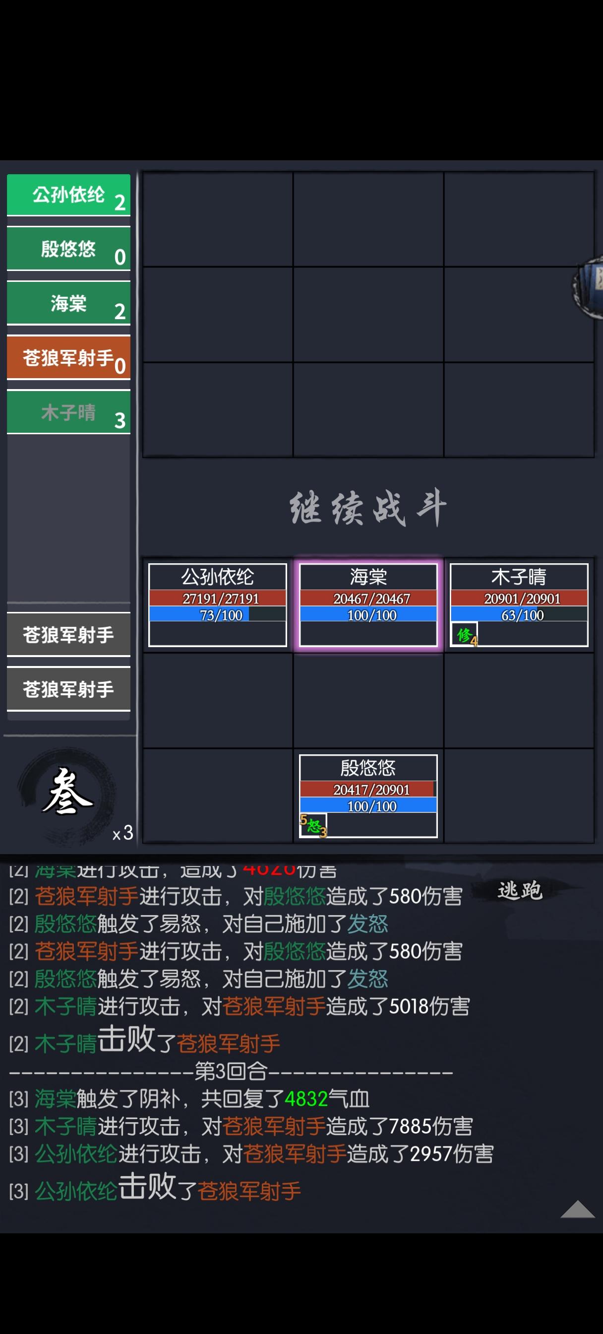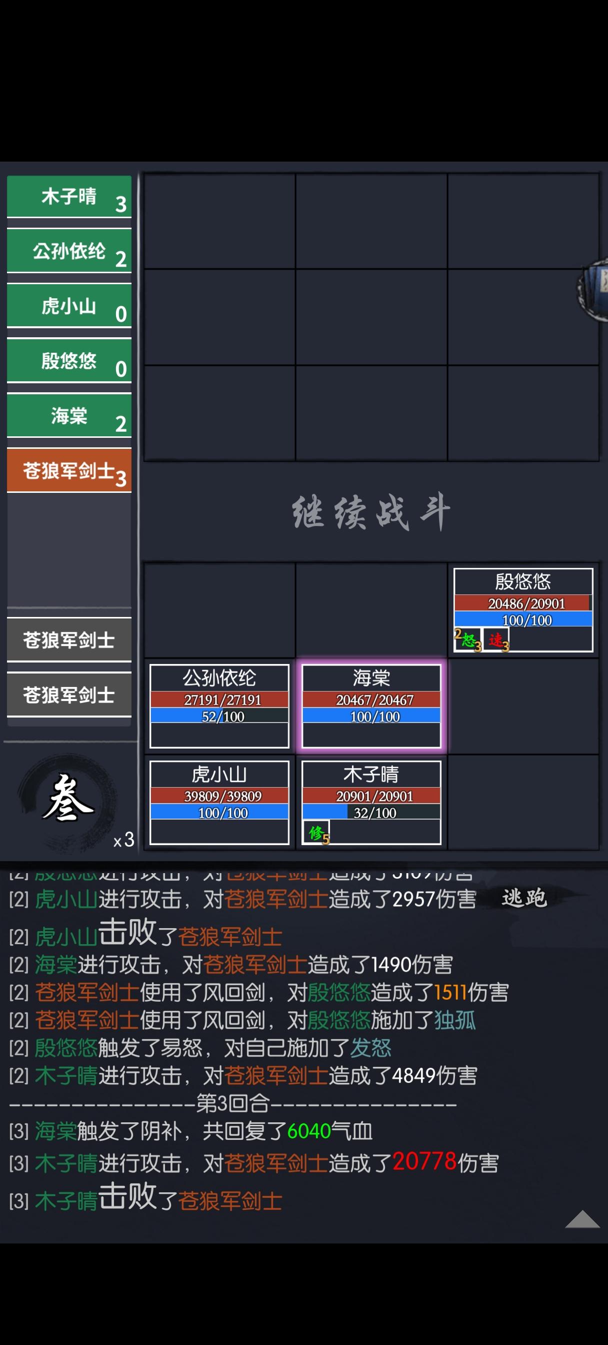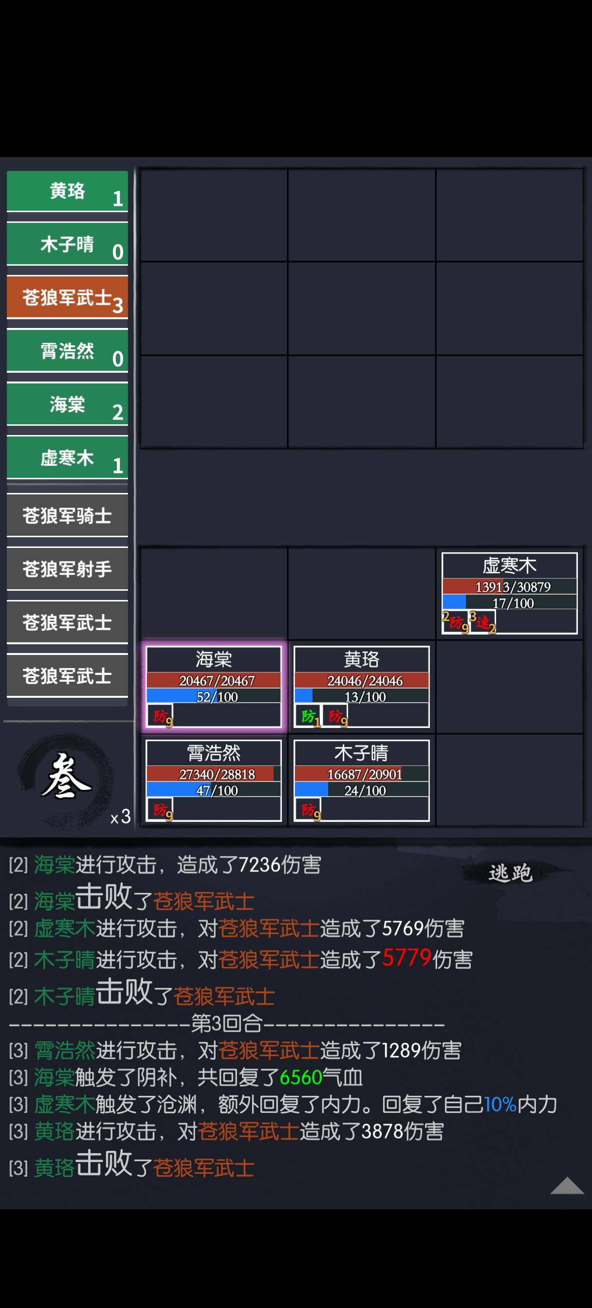 划重点:海棠的几个武学回血的关卡不要错过!14,17,20,23,30关(截图里都有提示,可以稍微观察一下结束截图的回合数)