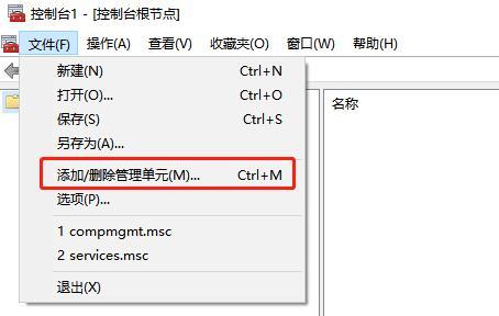 6、进入到新的窗口界面后,点击左上角的"文件",接着选择下方选项列表中的"添加/删除管理单元"。
