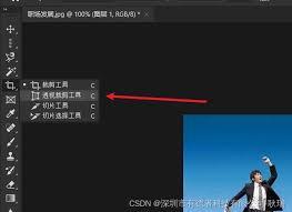 在工具栏中找到裁剪工具,长按该工具图标,会弹出隐藏的工具选项,从中选择“透视裁剪工具”。