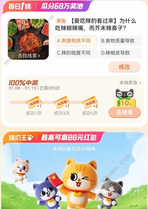 为什么吃辣椒辣嘴而芥末辣鼻子?这应该是属于生活或者生物小小知识呢,对呀为什么吃辣椒是辣嘴巴呢,而芥末就是辣鼻子呢,淘宝大赢家1月14日的题目内容及答案情况,现在来一一告诉给大家吧~