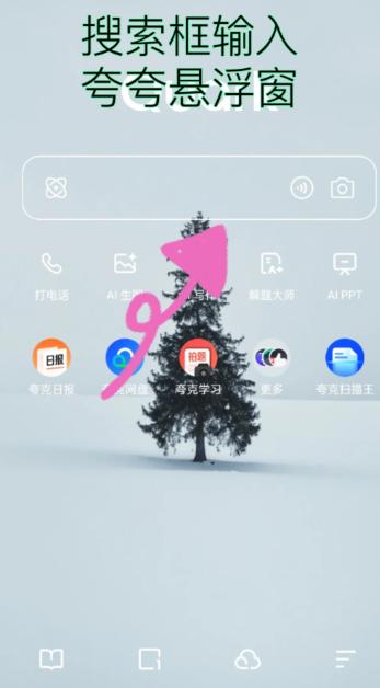 1,打开夸克app,在搜索框的力输入【夸克悬浮窗】进入;