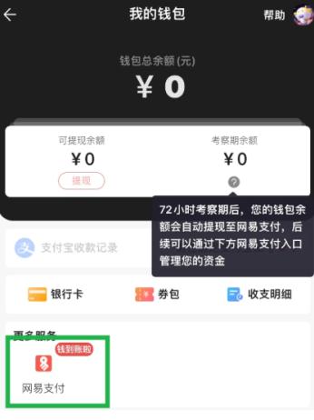 点击右下角的网易支付就可以提现了,另外下载网易支付app是可以免2元手续费的。