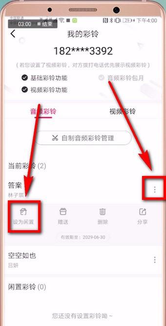 4.最后点击被替换的彩铃右侧的【…】图标,点击【设为闲置】即可