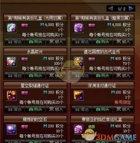 这是一个刺激消费的活动,通过购买合成器来合成极天幻翼套,光明极天幻翼装扮就是从中开出,最关键的是成功率是100%!需要8件高级装扮合成。喜欢极天幻翼套的玩家可以去尝试一下。合成器的价格是6900点劵,可以通过代币券进行购买,这个对于有金币而没有游戏币的玩家来说是个不错的消息。