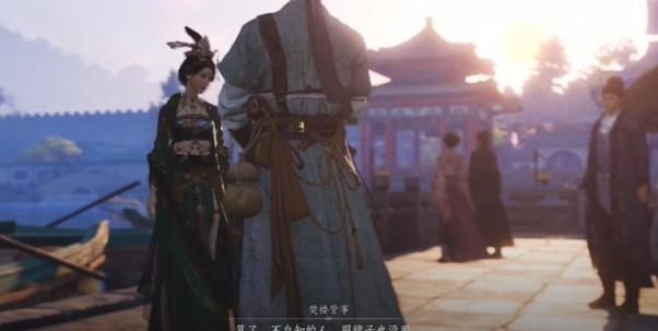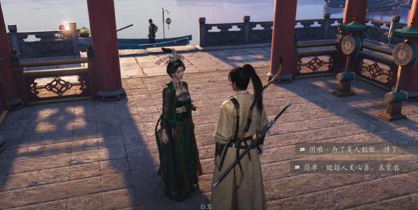 3、然后玩家来到湖边和管事对话:选自己是江逸。