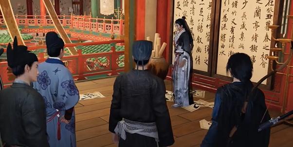7、首先玩家一楼先和花解语比投壶,不用担心,这个人会故意输的。