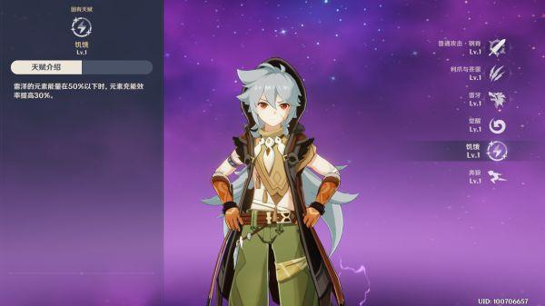 能为雷泽在元素能量低于50%时,提供30%的元素充能,