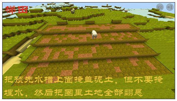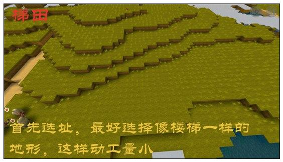 先选址,最好选择像楼梯一样的地形,这样动工量小。接着对地形进行修整,四格一层。然后挖出水槽填水,水槽和水槽之间相隔八格。围着水槽用锄头翻垦出可以种植的边界,因为一格水只能浇灌四格土地面积。最后把水槽上面用泥土掩盖,把圈里的土地全部翻垦一遍就行了。