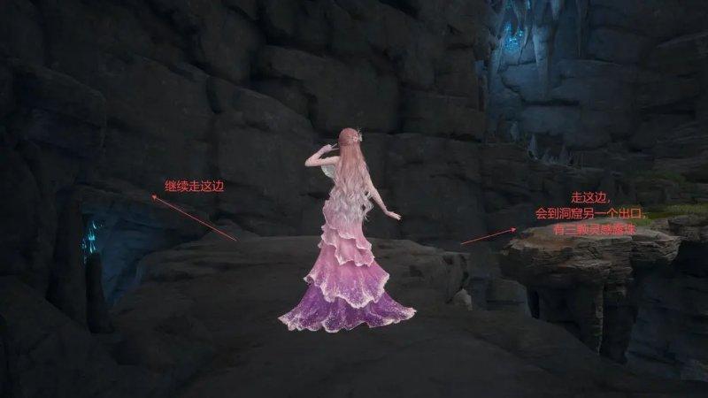 在探索的过程中,你还会发现洞窟内有多条路径可供选择,但它们并不互通。因此,在行走时需要仔细斟酌,以免错过任何一处宝藏。特别是左下角的位置,那里有四颗灵感露珠,是洞窟内宝藏最为集中的区域之一。