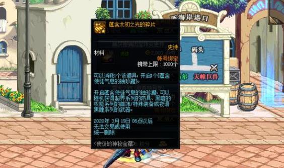 等到1.14春节版本更新后,玩家的角色只要穿戴春节装扮去刷任意的推荐地下城,在通关击杀领主之后均可以有几率掉落使徒的气息袖珍罐奖励;而这个袖珍罐在打开之后,可以必定从超界~普雷首饰~普雷特殊装备~夜语武器中随机获得任意一件。