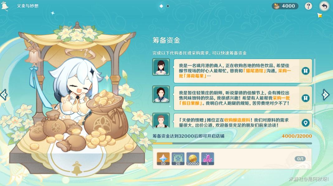 4、材料不够的话就去大世界采集,卖到任务要求的32000即可,最好全卖了。