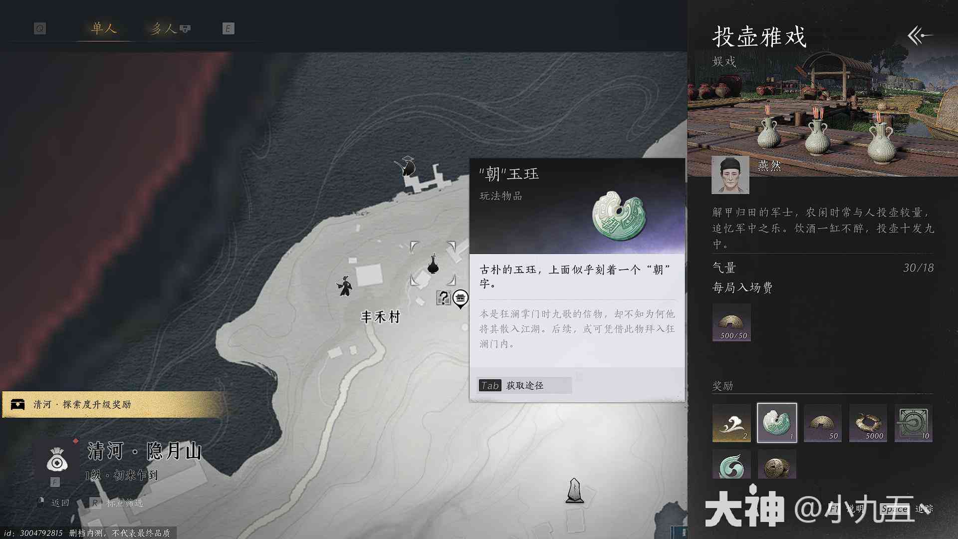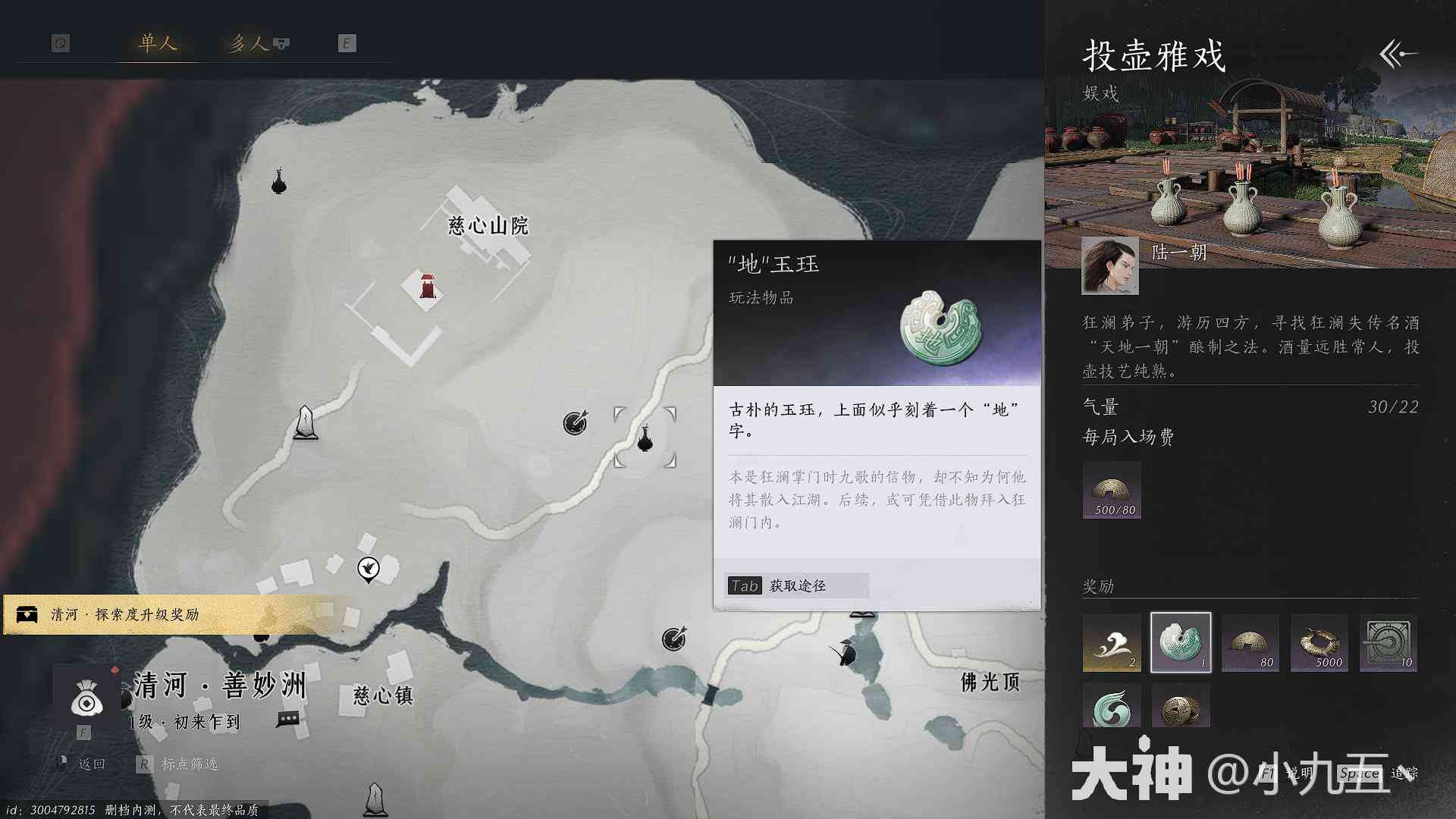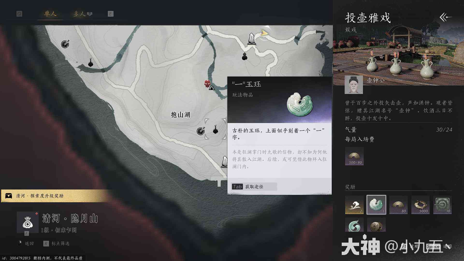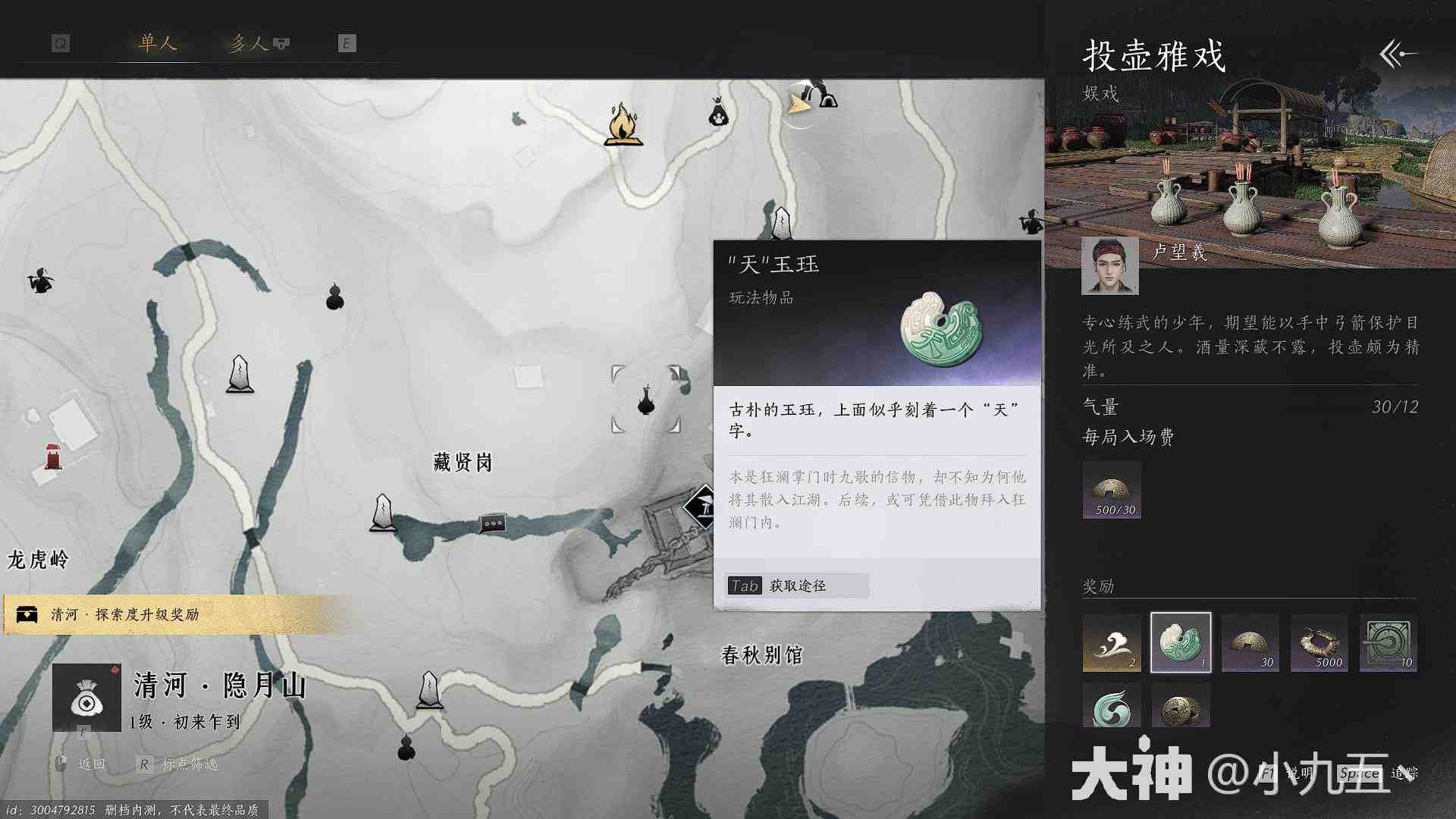 5、神仙渡被烧了的玩家,去下面四个点位完成投壶任务即可获得对应的四种玉佩