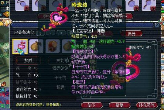 而神器在实际战斗中发挥的作用却极大,打个比方,TG的神器佩戴后,使用主动法宝,如纸人、踩T后,愤怒的回复都会提升1点,这无疑能更快地释放大特技或控制对手。WDD的神器佩戴后,使用三推增加护盾,再用妖风,命中简直比TG还高,鉴于神器的作用,笔者也很乐意把其他门派的神器也开了。