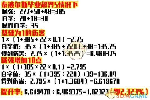 听闻五一收集箱与春节收集箱冲突,便以红十轻甲宗妹,超界五泰波尔斯毕业为模板计算了一下提升率。上图是五一收集箱10属强带来的提升。