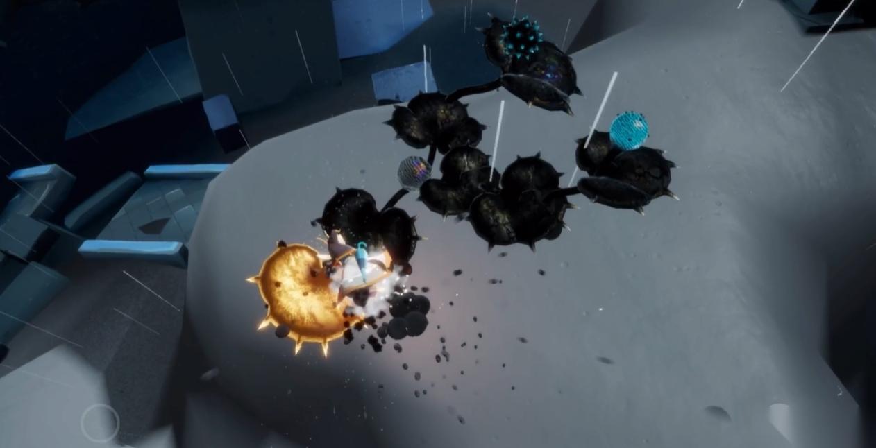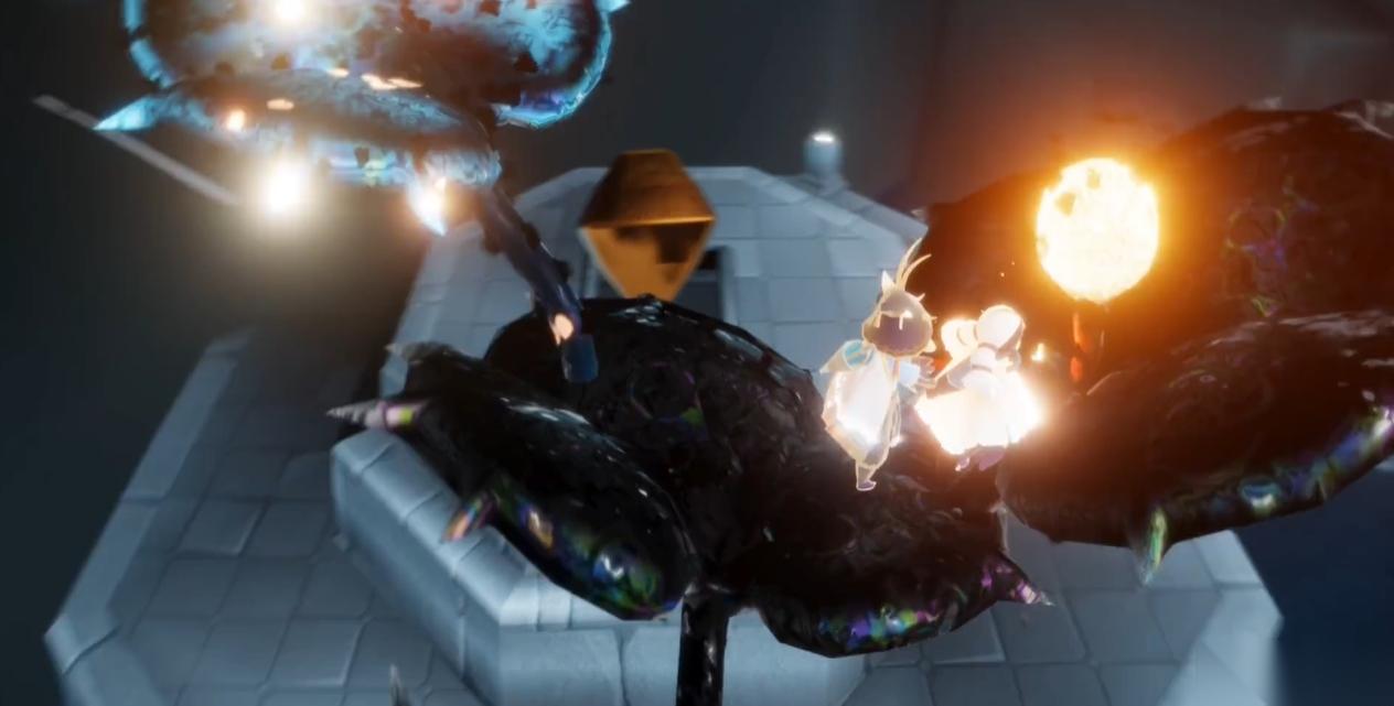 等这个分支烧的差不多时就放下朋友,让朋友控制住即将要长出来的花,然后自己再去烧另一边。飞行停留在花瓣上是有技巧的,飞到花瓣的附近时,切换垂直飞行状态,然后向花瓣的方向拨动方向键就可以了。