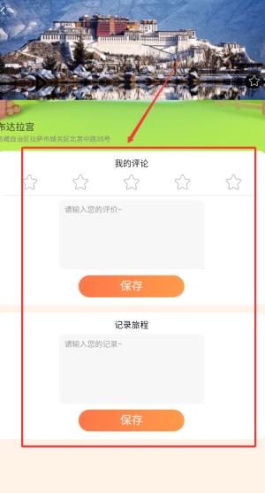 2、用户可手动调整或搜索景点名称,支持添加多张精美照片和详细文字描述。