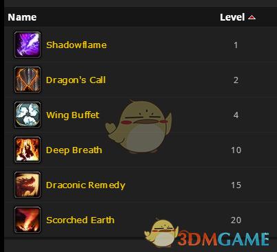 2. 龙之呼唤(新技能,唯一):你向对象发出一道刺耳声波,造成25点龙类伤害。你的队伍中每有一个额外的与释放者相同种族的宠物,额外造成7点龙类伤害。