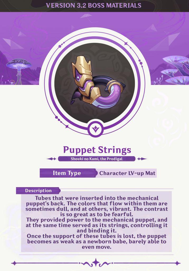 原神傀儡的悬丝是草神纳西妲的突破材料,玩家可以在散兵周本中获得。