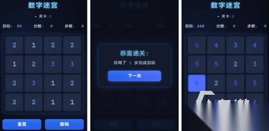 难度等级有所升级,刚开始的关卡可能特别简单,只会看到1~3的数字,这些数字的位置都被随机打乱,其中的规则就是点击屏幕,并将两个相同的数字方块直接点击,即可形成较高的数字,还会将相应的分数,累积到自己的分数中。关卡逐渐升级之后,呈现出的数字就会越来越高,可能会出现1~6乃至1~10等等。